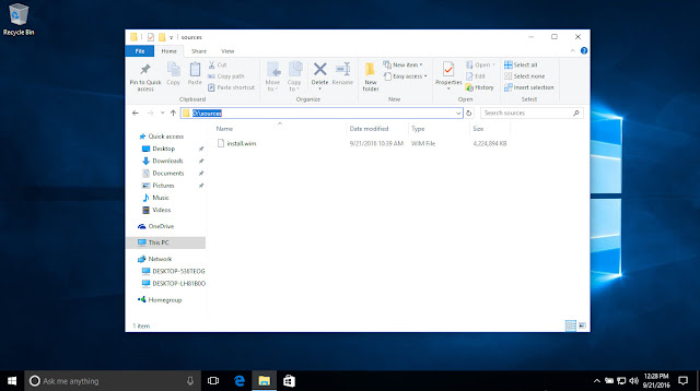 Bây giờ tôi muốn cài mới lại từ chiếc máy tính này tôi cần chuẩn bị file ảnh Windows 10, file này được nén thành install.wim nằm trong thư mục sources trong bộ cài ISO mà bạn đã tải về trên mạng.Nếu bạn chưa có sẵn có thể tải về bộ cài ISO theoliên kết này. Cách để lấy file này trên ổ lưu trữ khác ổ cài windows ta tạo mới một thư mục tên sources chẳng hạn sau đó tìm đến file ISO nhấp đúp chuột vào file nó sẽ tự mount ra ổ ảo, truy cập ổ ảo đó trong thư mục sources copy file install.wim vào thư mục mà ta vừa tạo mới.