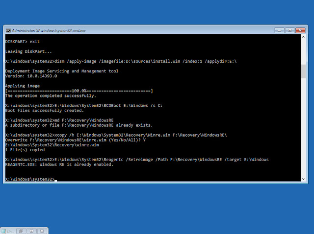 nó sẽ báo tập tin này đã tồn tại nhấn Y xác nhận xóa và copy tập tin mới. Sử dụng tiếp lệnh dưới kích hoạt Windows RE