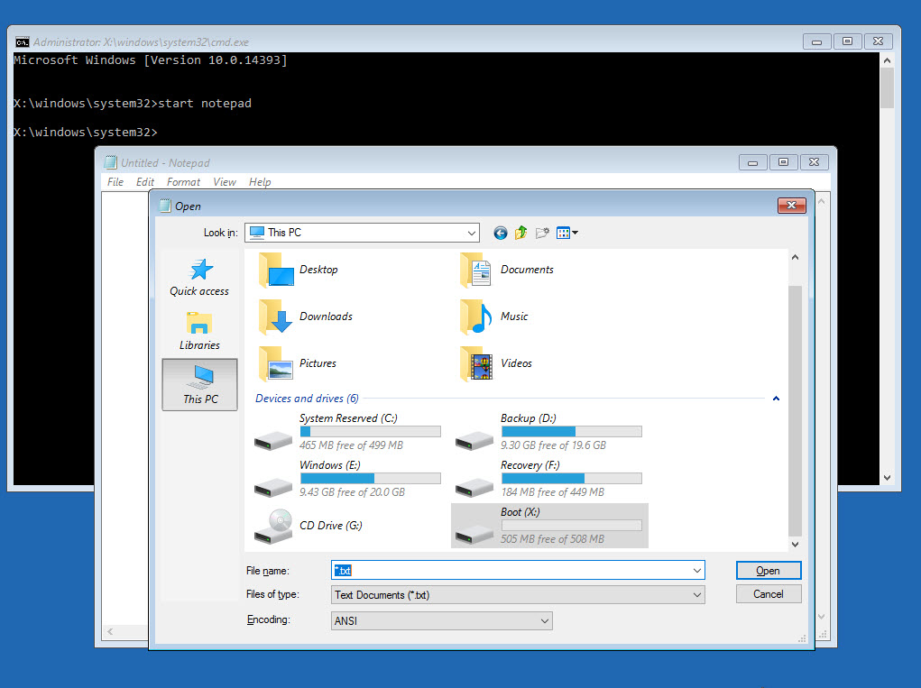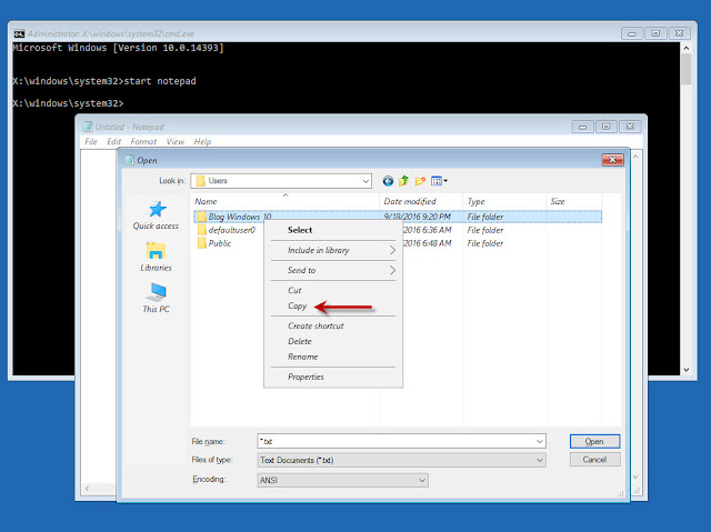 Đến đây tôi sẽ hướng dẫn mở rộng thêm cho bạn nào chưa biết đó là lấy lại dữ liệu cần thiết trên ổ cài windows cũ trước khi format lại ổ này. Như vậy sẽ có bạn thắc mắc tại sao không làm trong windows luôn mà làm ở đây. Tại vì tôi muốn nhấn mạnh có thể lấy được tập tin tại màn hình Command Prompt và thêm lý do nữa giả định windows đang bị lỗi không thể khởi động được.