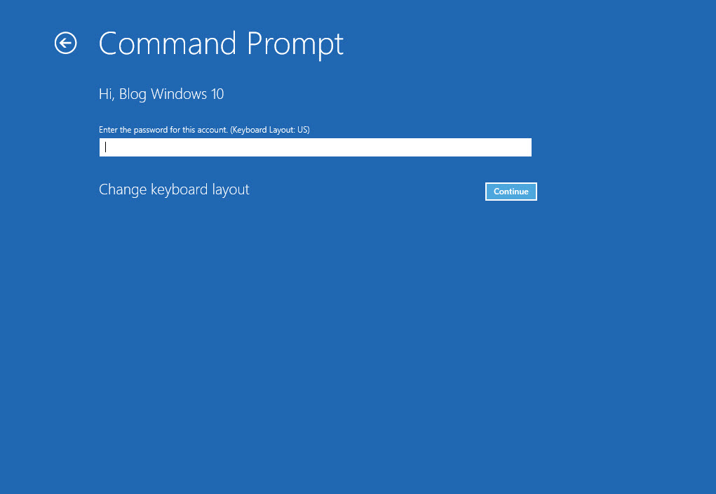 Nếu đang sử dụng mật khẩu trên Windows 10 thì gõ mật khẩu vào trước khi nhấn Continue, nếu không sử dụng mật khẩu bỏ trống nhấn Continue