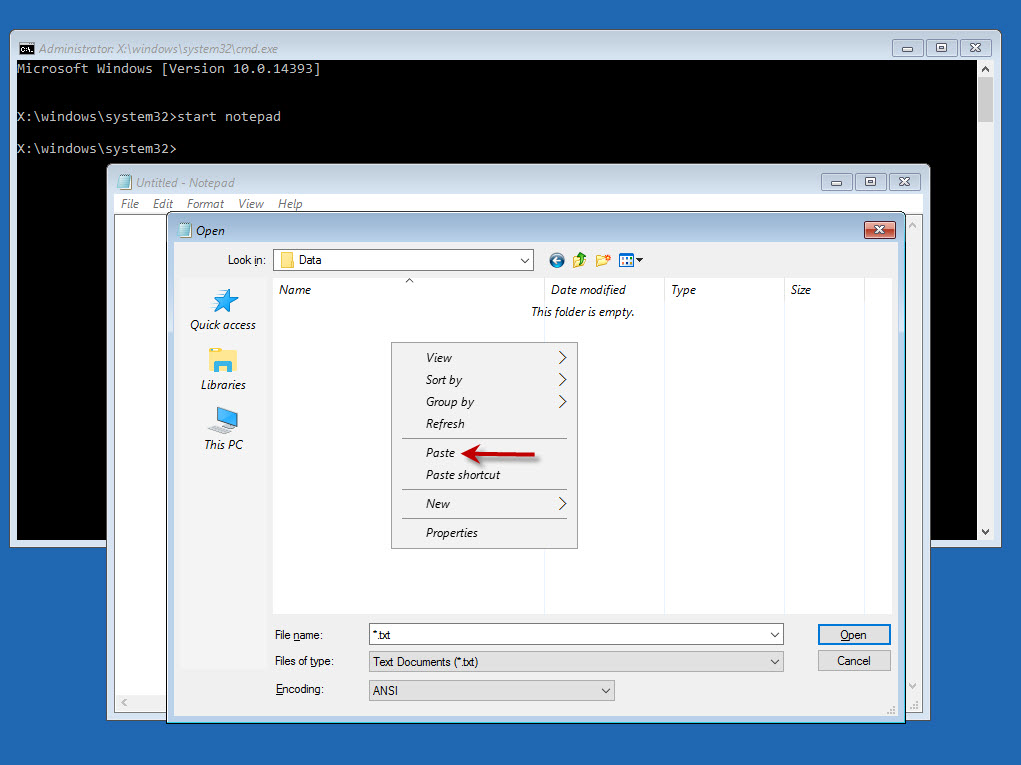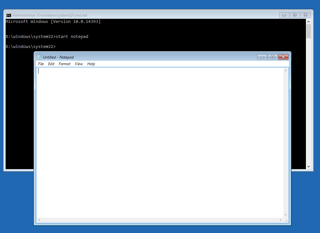 Gõ start notepad vào Command Prompt nhấn enter để mở trình soạn thảo Notepad