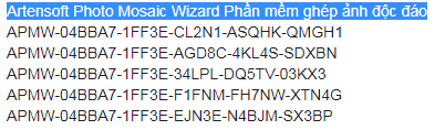Key bản quyền phần mềm Artensoft Photo Mosaic Wizard